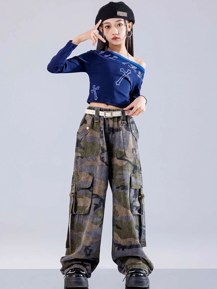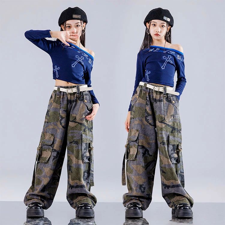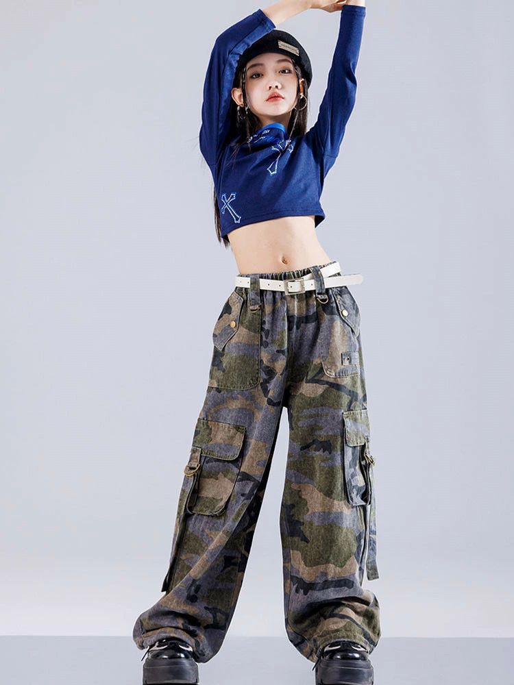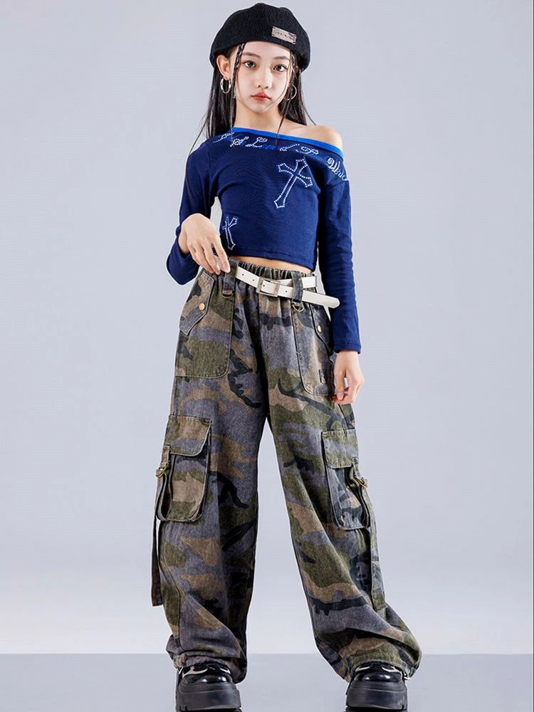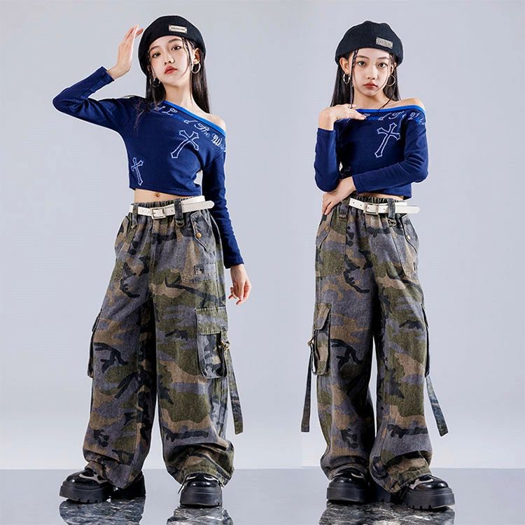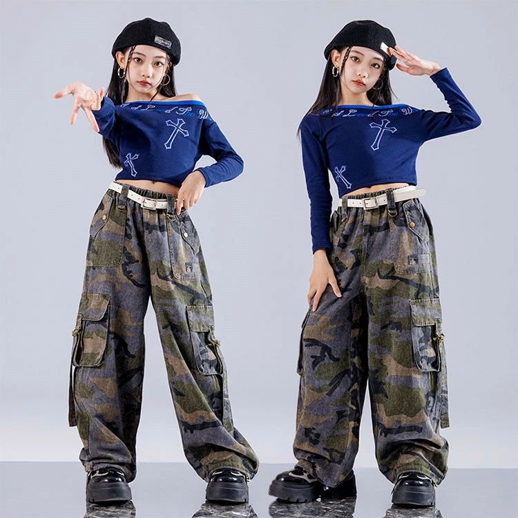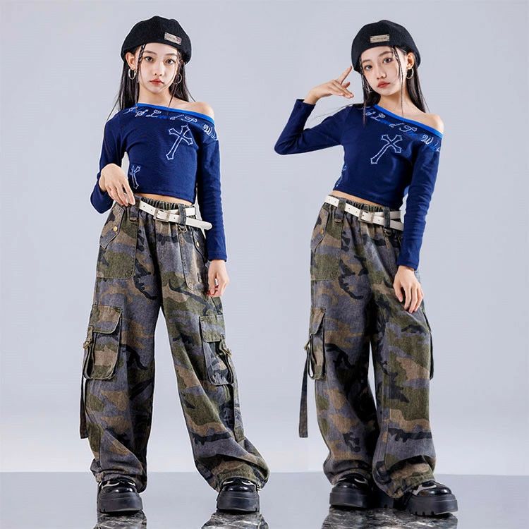 キッズ ダンス衣装 ブルー 長袖 Tシ