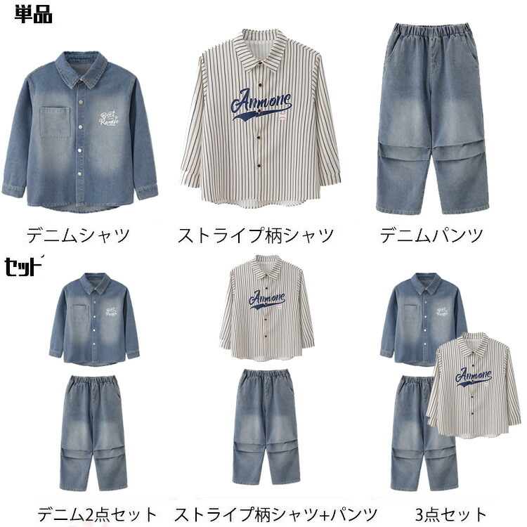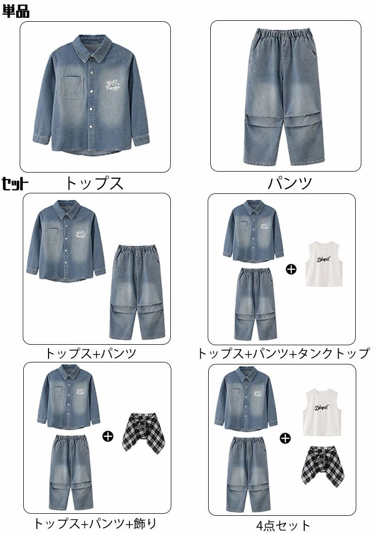 商品内容: デニムトップスのみ デニムパンツのみ デニム2点セット ストライプ柄シャツのみ ストライプ柄シャツ+パンツ デニム2点セット+白タンクトップ デニム2点セット+柄シャツ デニム2点セット+腰飾り デニム2点セット+白タンク+腰飾り デニム2点セット+柄シャツ+腰飾り