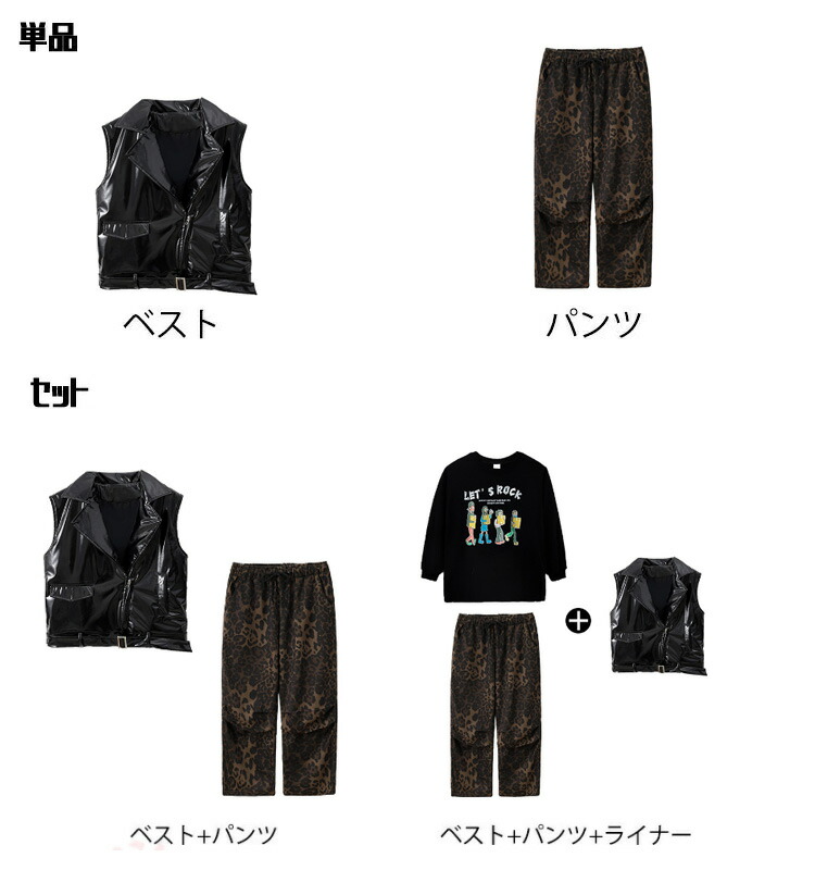 商品内容: 革ベストのみ ヒョウ柄パンツのみ ベスト+パンツ ベスト+パンツ+長袖ライナー