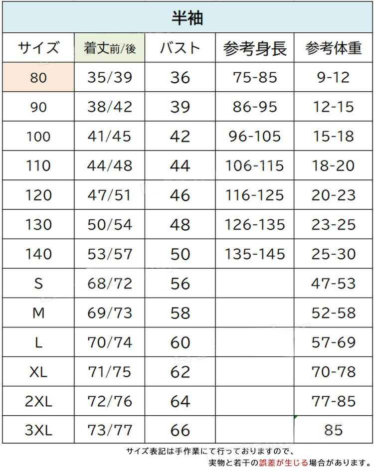size: 80 90 100 110 120 130 140 S M L XL 2XL 3XL