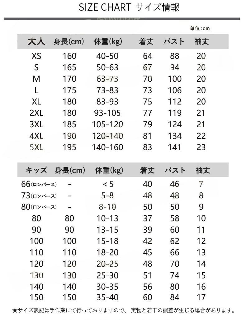 size: ロンパース59 ロンパース66 ロンパース73 ロンパース80 ロンパース90 80 90 100 110 120 130 140 150 XS S M L XL 2XL 3XL