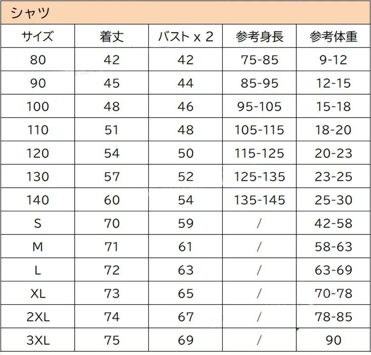 size: 80 90 100 110 120 130 140 S M L XL 2XL 3XL