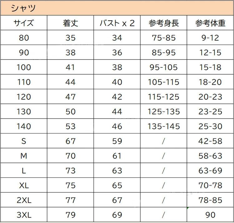 size: 80 90 100 110 120 130 140 S M L XL 2XL 3XL