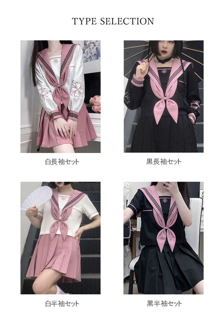 商品: 白長袖セット 黒長袖セット 白半袖セット 黒半袖セット