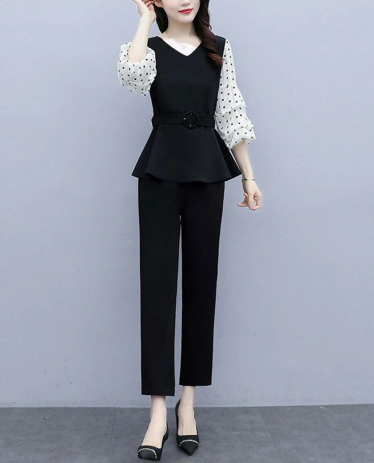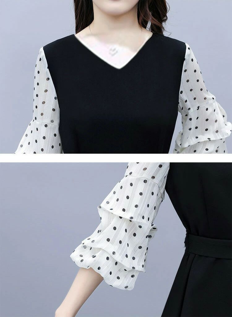 シアースリーブ ドッキングシャツ ボウタイシャツブラウス
