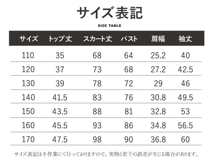 size: 110 120 130 140 150 160 170