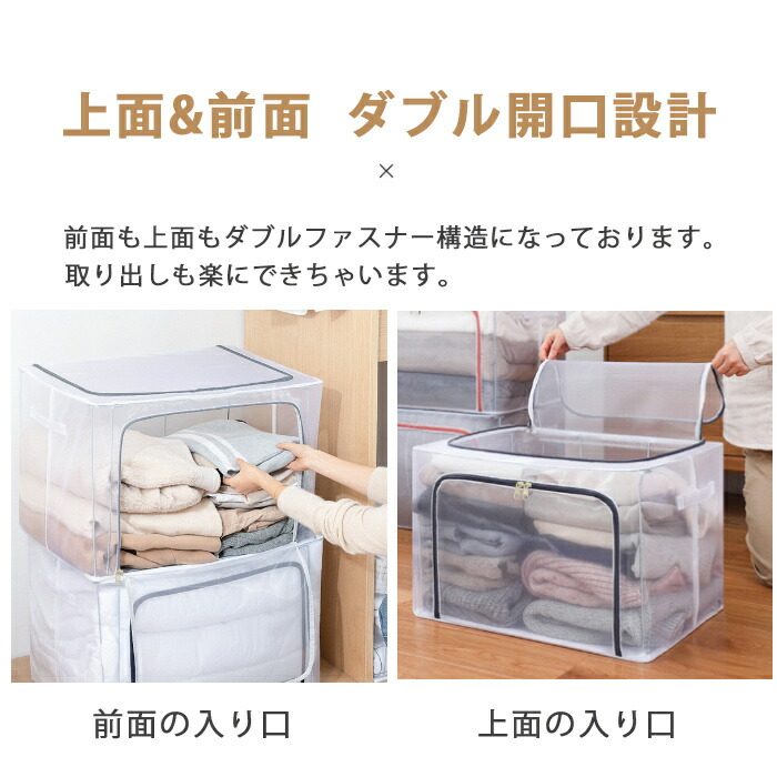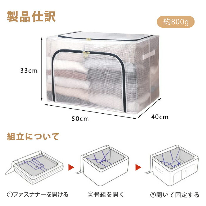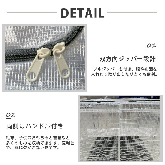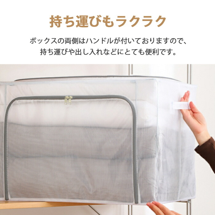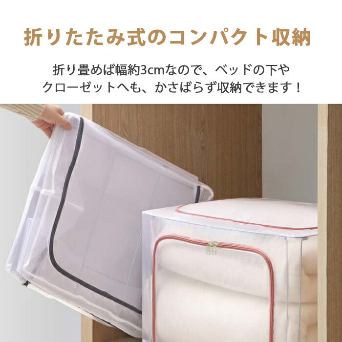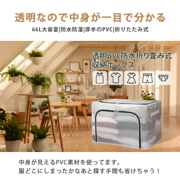 収納ボックス 折りたたみ 蓋付き ファスナー付 大容量 透明 66L 取っ手付き PVC 衣類収納ボックス 折り畳み収納ボックス 収納ケース 無臭 綿麻 ジーンズ収納 衣類 収納 防塵 防湿 通気性 ケースボックス 下着 毛布 収納BOX