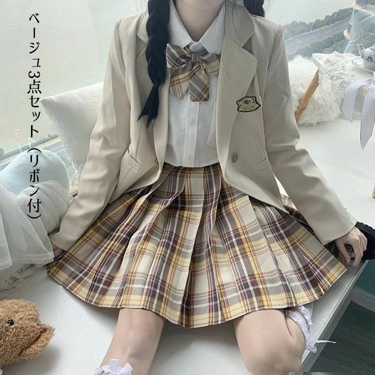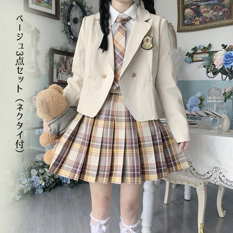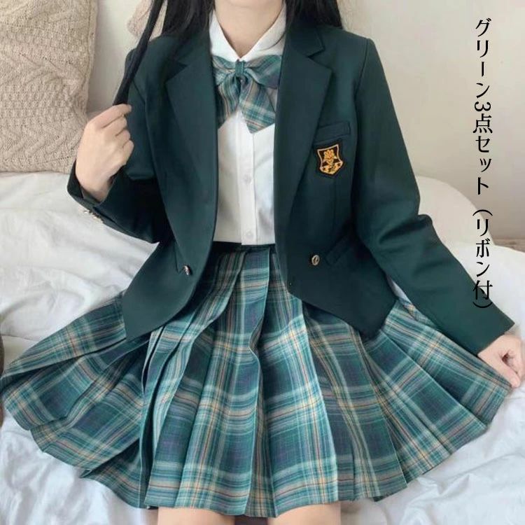 color: グリーン3点セット(ネクタイ付) グリーン3点セット(リボン付) ベージュ3点セット(ネクタイ付) ベージュ3点セット(リボン付)