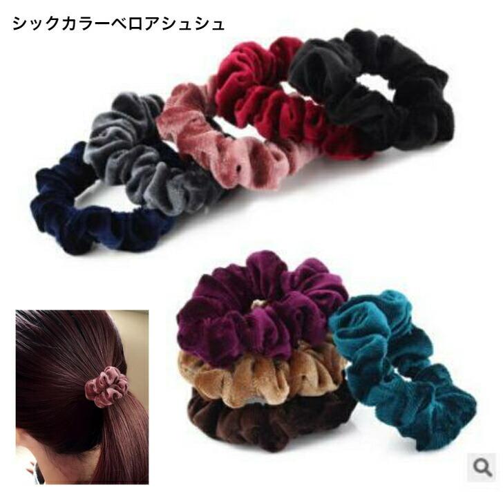 シュシュシックカラーベロアシュシュ秋冬かわいいヘアゴム普段使いシンプルおとな小さめ30代40代50代オフィス通学