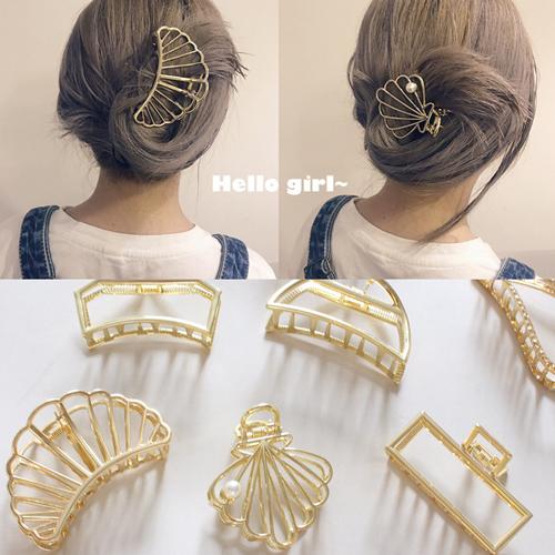 ヘアクリップ シェル 貝殻 シェル バレッタ ゴールド バンズクリップ 髪どめ クリップ 二次会 パーティー 髪留め アレンジ 簡単 清楚 ヘアアレンジ