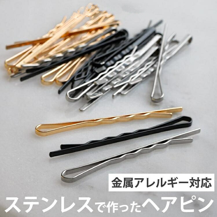 金属アレルギー対応 ヘアピン 15本セット アメリカピン ウェーブ 玉なし シルバー ゴールド ブラック まとめ髪 髪留め へアアレンジ ヘアアクセサリー