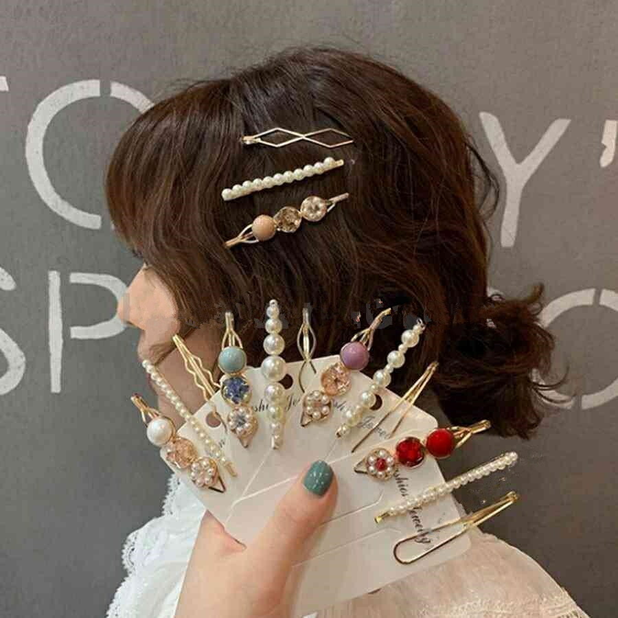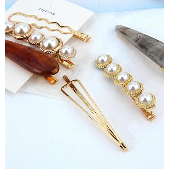 ヘアピンゴージャスヘアピン3点セットゴールドヘアピン、パールクリップ大理石風クリップ プチプラおとな上品高級感