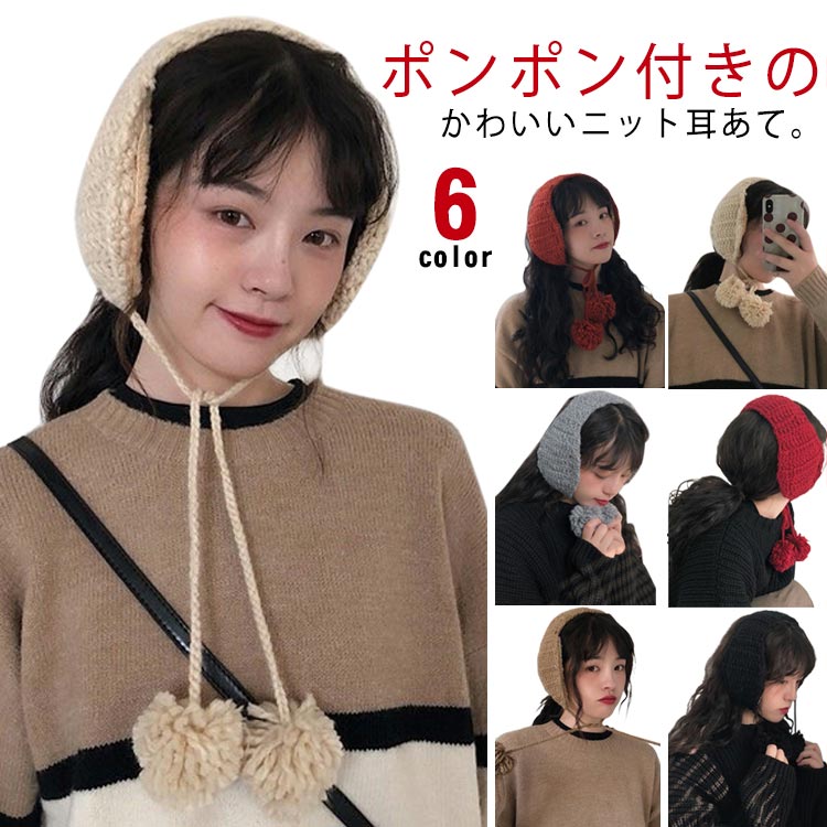 ポンポン付きのかわいいニット耳あて 耳あて マフラー 裏ボア ニット帽 イヤーマフバッグ 小物 ブランド雑貨 耳あて