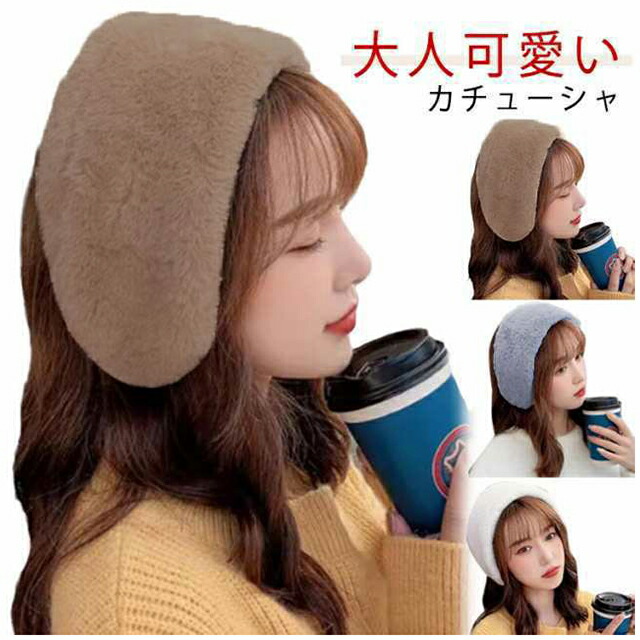 大人可愛いターバンライクの幅広ファー耳当て 耳あて カチューシャ 髪飾り 暖かい もこもこ 秋 冬 秋冬