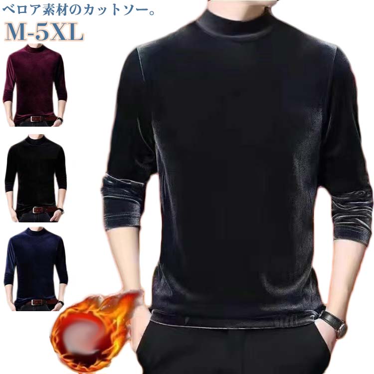 ベロアカットソー 長袖シャツ ハイネック メンズ ベロア カットソー 暖かインナー シャツ 長袖 ロン 起毛 トップス