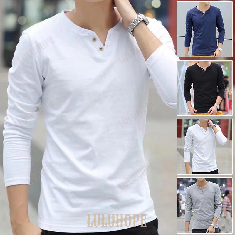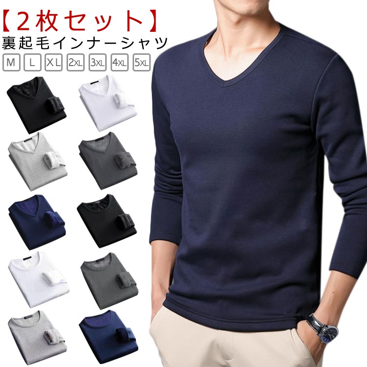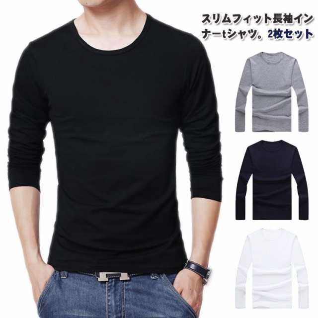 2枚セット メンズ インナーシャツ 長袖シャツ 長袖 ネック 丸首 スリム 細身 無地 プルオーバー シャツ