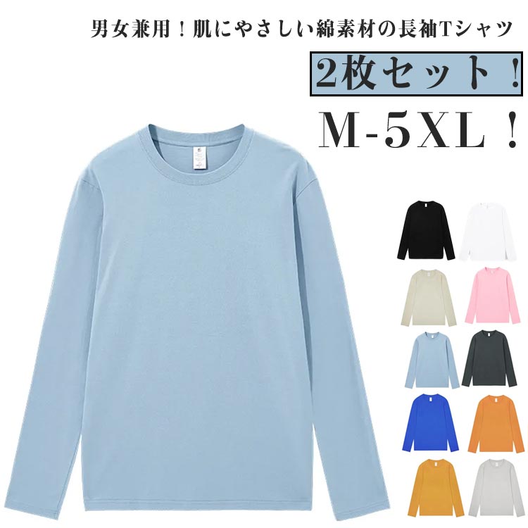 綿 Tシャツ 男女兼用 ユニックセス 無地Tシャツ 長袖tシャツ カットソー 薄手 クルーネック ロンT 長袖 シンプル