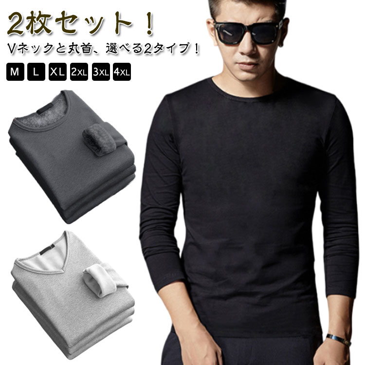 2枚セット メンズ インナーtシャツ 長袖tシャツ 長袖 Uネック 丸首 スリム 細身 無地 プルオーバー Tシャツ