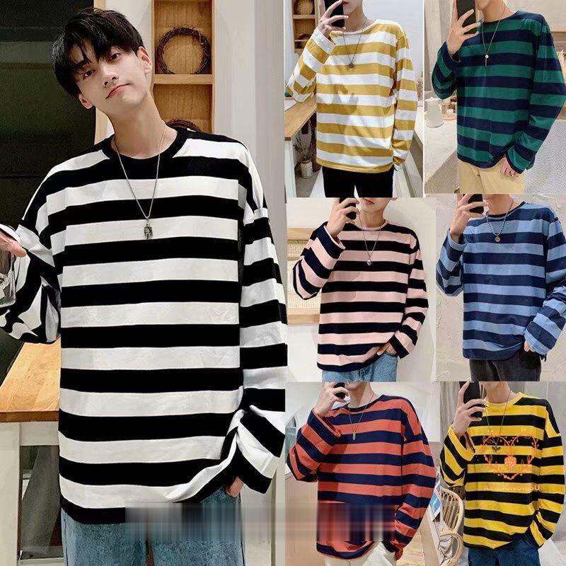 ロングシャツ 秋服 メンズ ボーダーシャツ オーバーサイズ ゆったり ロン 長袖シャツ クルーネック トップス