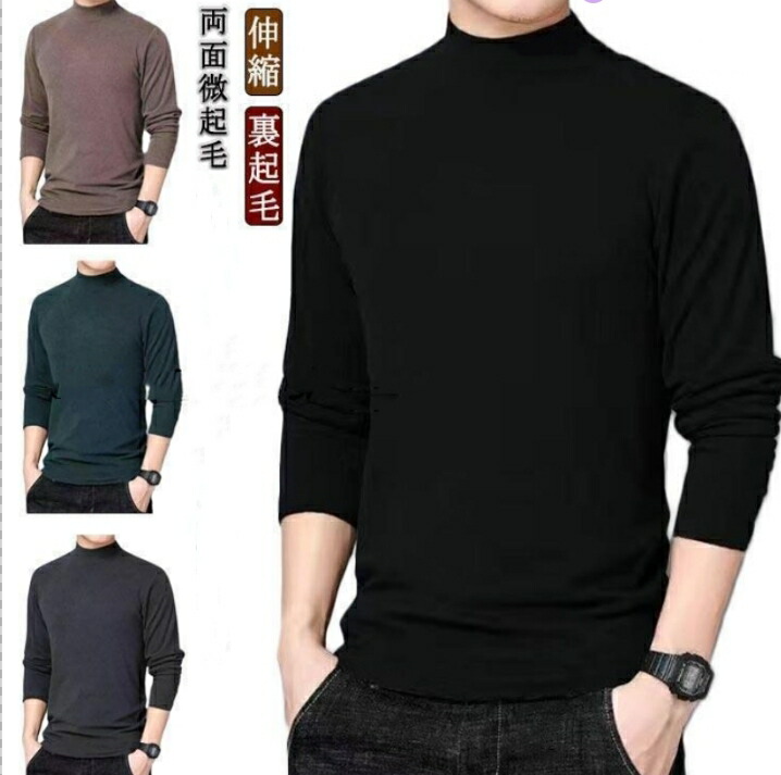 ハイネック カットソー メンズ 暖かい 裏起毛 シャツ 長袖 ロン おしゃれ 無地 モックネック 微起毛 暖かい トップス 春