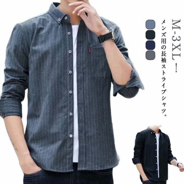シャツ メンズ ワークシャツ 長袖 カジュアルシャツ ジャケット アウター 折り襟 ストライプ 秋物