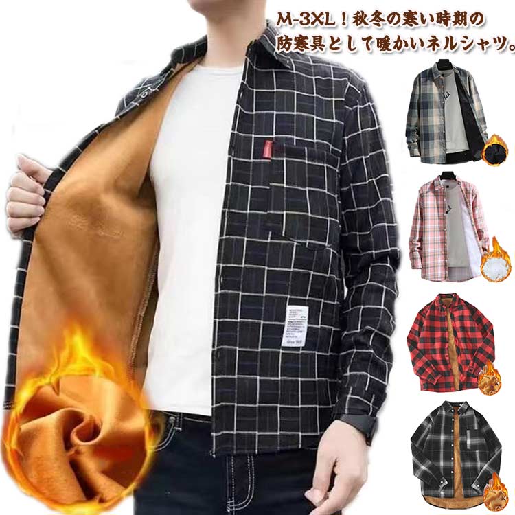極暖 裏ボア ネルシャツ カジュアルシャツ 長袖シャツ 防寒着 春秋冬 裏起毛シャツ チェックシャツ メンズ 柄シャツ カジュアル おしゃれ 秋 冬 20代 30代 40代 50代