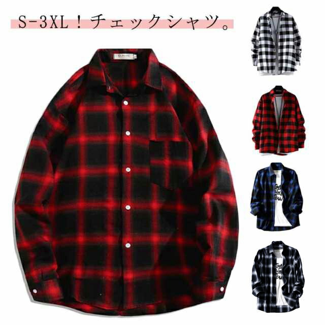 チェック柄 シャツ メンズ 長袖 カジュアル 大きいサイズ 春秋冬 チェックシャツ ボタンダウンメンズファッション トップス カジュアルシャツ