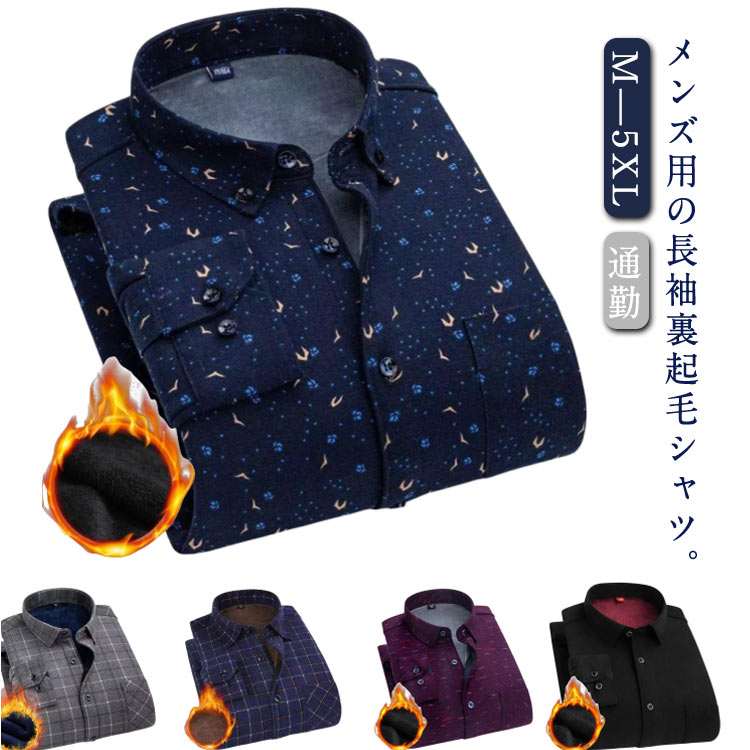 カジュアルシャツ メンズ 冬服 長袖シャツ トップス 裏起毛 シャツ 裏フリース 無地 厚手 ボアシャツ 防寒 あったか 秋冬 20代 30代 40代 50代