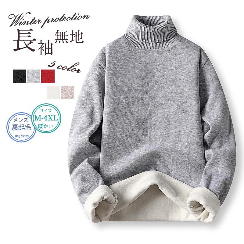 ハーフハイネックセーター ニット加湿器 メンズ モックネック 無地 裏起毛 シンプル ビジネス オフィス 長袖 ニットソー インナー 綿 春 秋