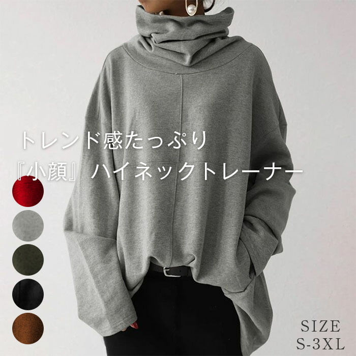 トレーナー レディース 秋 春 カレッジ チュニック カットソー トップス オフタートル 長袖 大きめ ゆったり 重ね着 トレーナー レイヤード風 体型カバー シンプル カジュアル ゆるっと