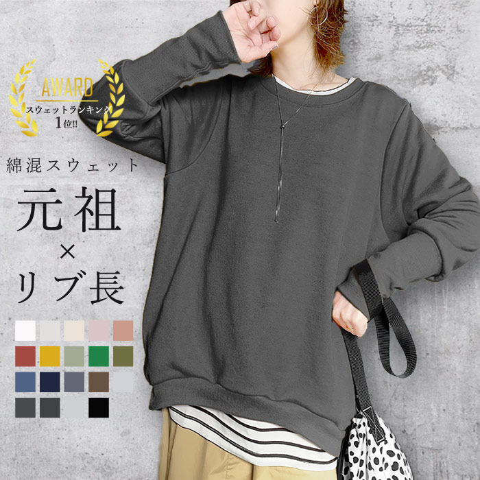 24Hダケ 待望の元祖タイプ入荷 トレーナー レディース おしゃれ ゆったり コットン混 裏毛 大きいサイズ スウェット メンズ リブ長 トップス 長袖 無地 部屋着