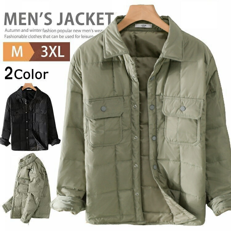 中綿ジャケット メンズ キルティングジャケット 長袖 シャツジャケット 無地 アウトドア 男女兼用 アウター ブルゾン 秋冬