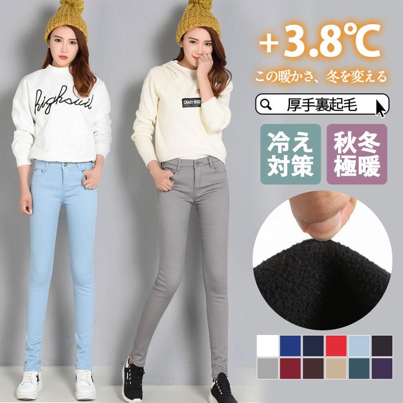 スキニーパンツ レディース 裏起毛 レギパン デニム スリム 暖かい 秋冬 ストレッチ ジーパン 寒さ対策 防寒 無地 あったか