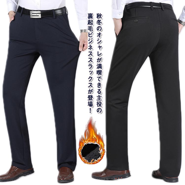 スラックス メンズ 冬 裏起毛 ロングパンツ ストレッチ ビジネスパンツ あったかパンツ 暖かい 通勤用 紳士パンツ