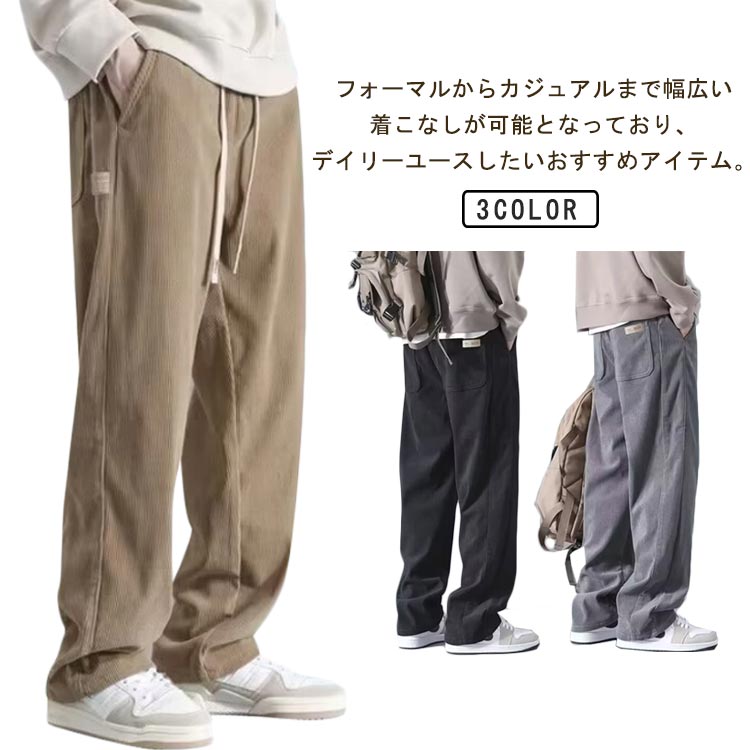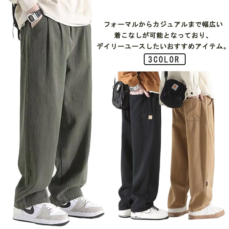 ワイドパンツ メンズ 無地 ストレートパンツ カジュアルパンツ ロングパンツ イージーパンツ おしゃれ