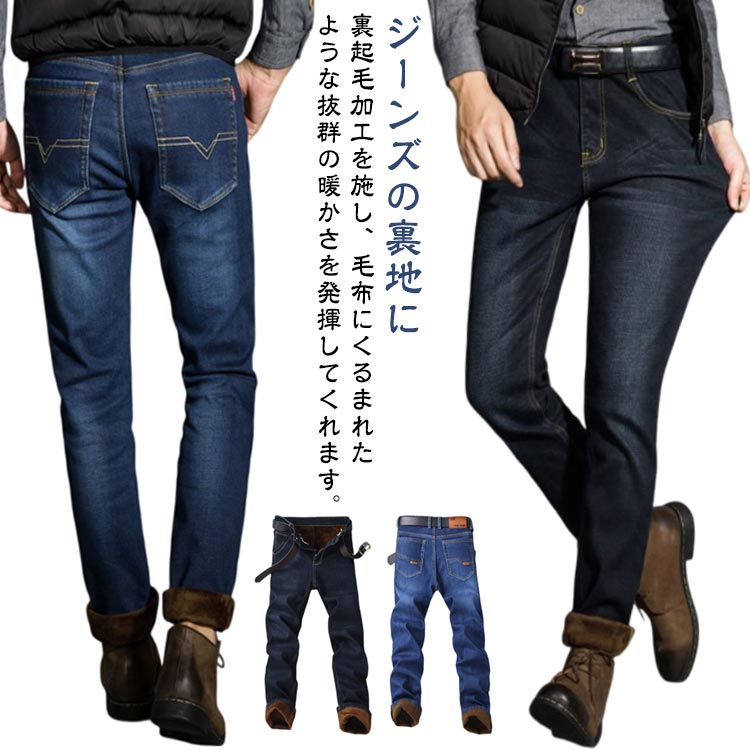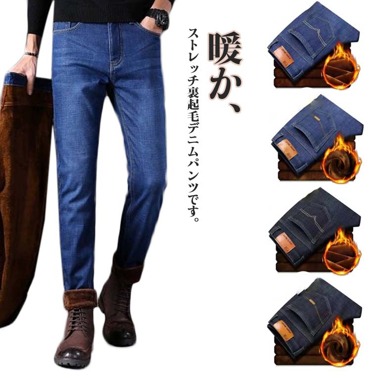 裏起毛 デニムパンツ メンズ 暖かい デニムパンツ 裏フリース ストレートパンツ ジーンズ あったか ストレッチパンツ スリム 保温 防風 防寒