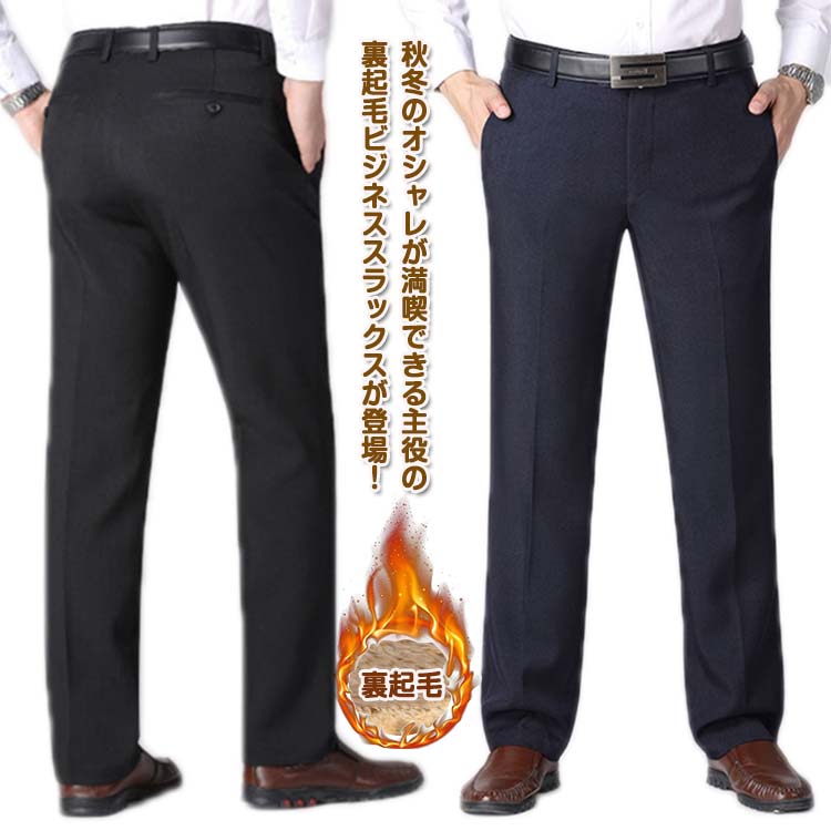 スラックス メンズ 冬 裏起毛 ロングパンツ ストレッチ ビジネスパンツ あったかパンツ 暖かい 通勤用 紳士パンツ