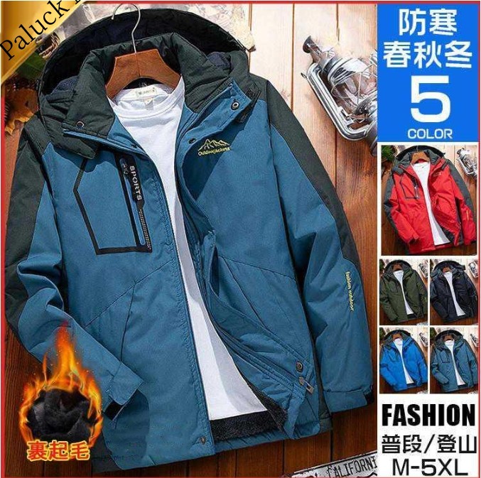 マウンテンパーカー メンズ 裏起毛 防寒 登山ウェア トレッキングジャケット アウトドア 防風 防水 厚手 フード脱着