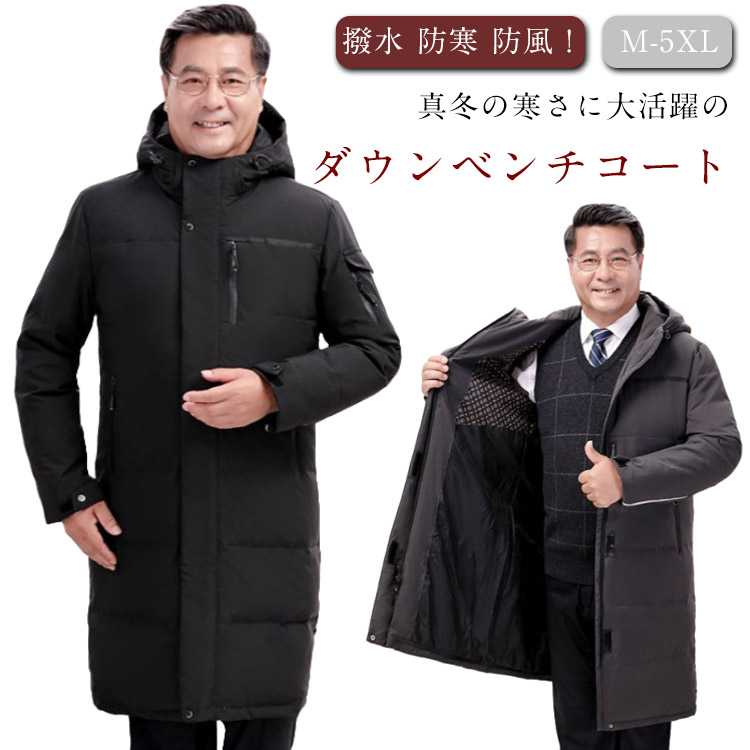 ロング丈 大きいサイズ 厚手 ダウンコート メンズ ダウンジャケット フード付き 無地 軽量 ロングダウンコート アウター 大きいサイズ 防寒 防風 暖かい 通勤 ブラック
