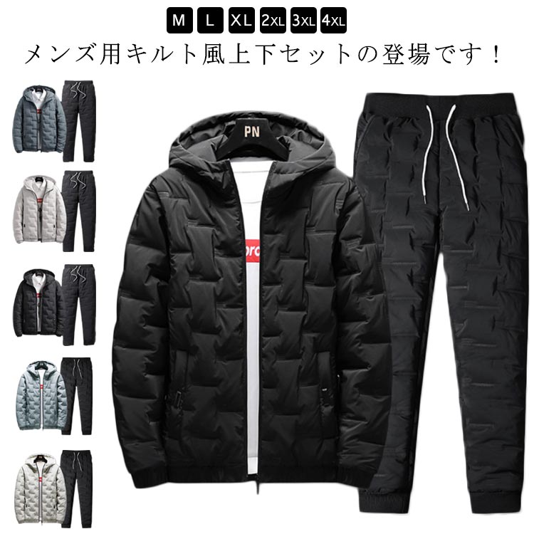 キルト セットアップ セットアップ メンズ 上下セット 冬 中綿ジャケット 厚手パンツ ジャージパンツ