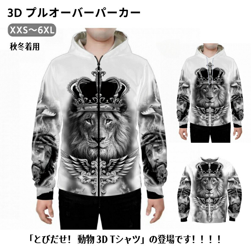 パーカー メンズ レディース プルオーバーパーカー 秋冬 長袖パーカー アニマル 3D 虎 タイガー ライオン プルオーバー フードつき