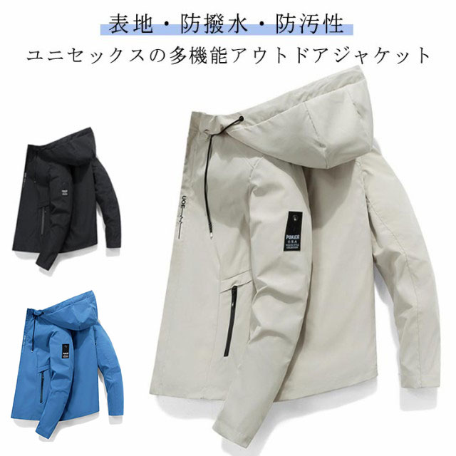 マウンテンパーカー メンズ ジャケット 撥水 防風 ウィンドブレーカー ブルゾン アウトドア キャンプ 登山 フード付き カジュアル ライトジャケット 作業着