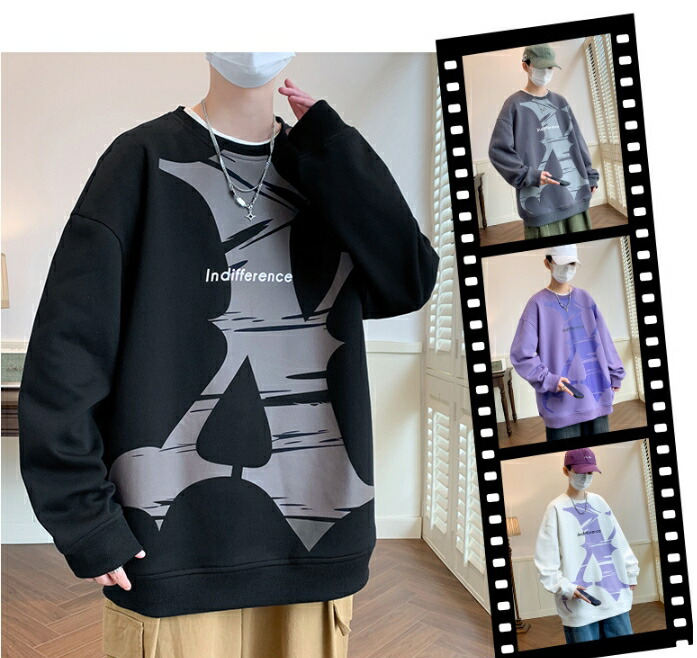 メンズ トレーナー クルーネック スウェット プリント スポーツ キレイめ 春服 春物 大きいサイズ ホワイト