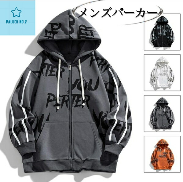 Paluck No.2 ジップアップパーカー メンズ パーカー 秋物 長袖 英字プリント スウェット ジップパーカー 春服