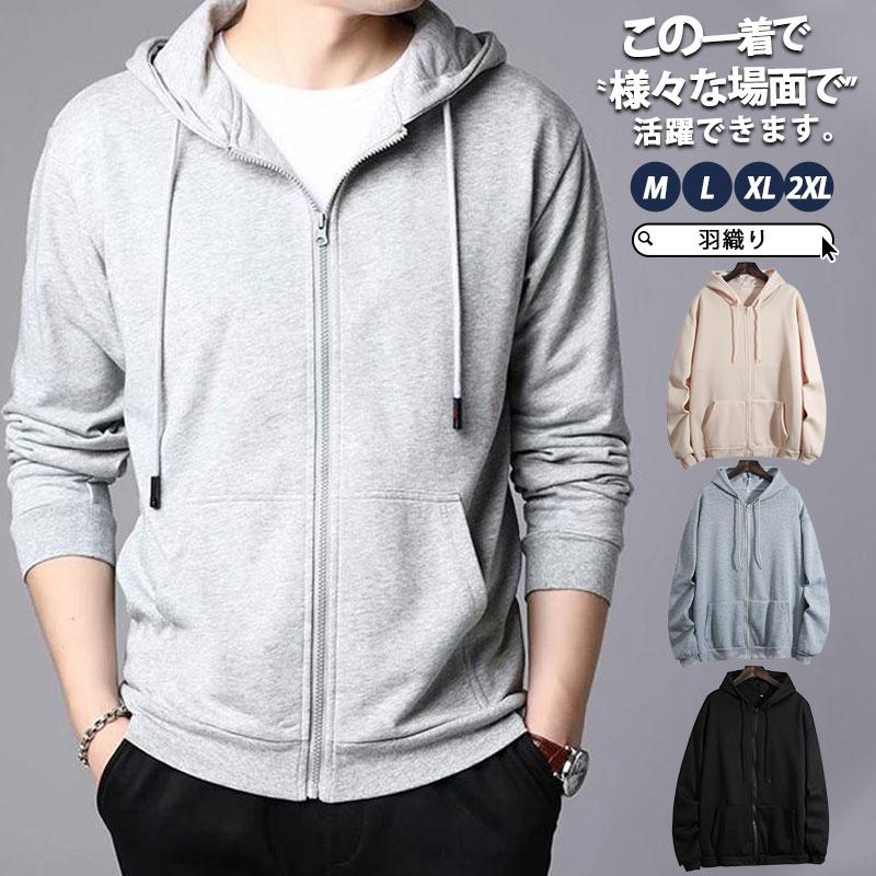 パーカー メンズ 春 夏 秋 メンズパーカー ジップパーカー 長袖 前開き フード付き カーディガン 長袖 秋服 着痩せ 羽織