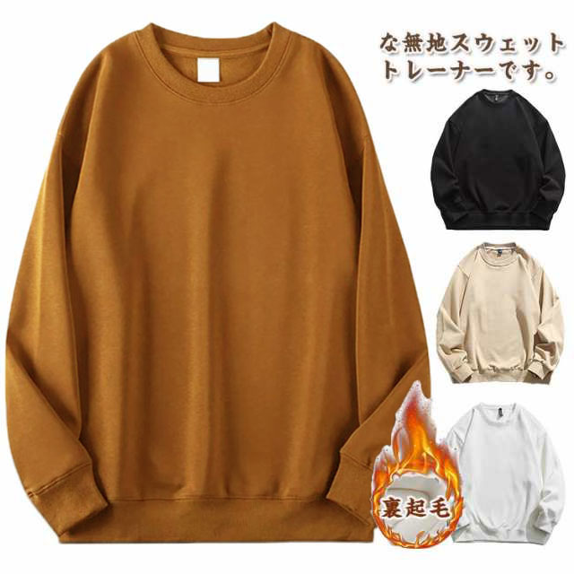 無地トレーナー メンズ レディース 無地 スウェット パーカー カジュアル クルーネック 厚手 裏起毛 あったか