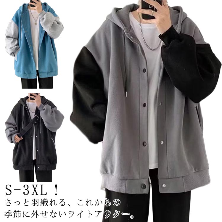 パーカー スウェット アウター メンズ ジップアップパーカー 韓国風 長袖 薄手 春 防風 トップス フード付き アウトドア おしゃれ