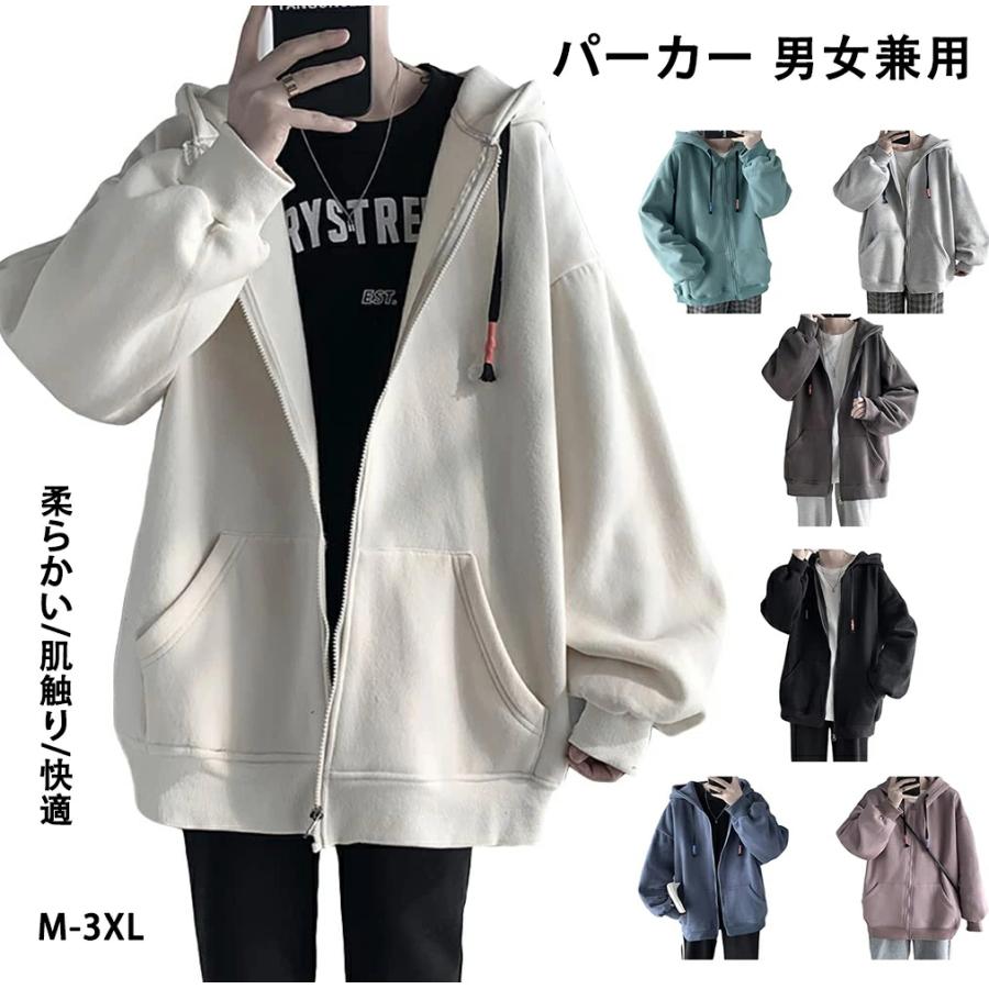 ジップ パーカー メンズ 秋服 オーバーサイズ 大きいサイズ ゆったり ユニセックス 長袖 春秋服 人気 無地 柔らかい肌触り 快適 トップス スポーツ 男女兼用
