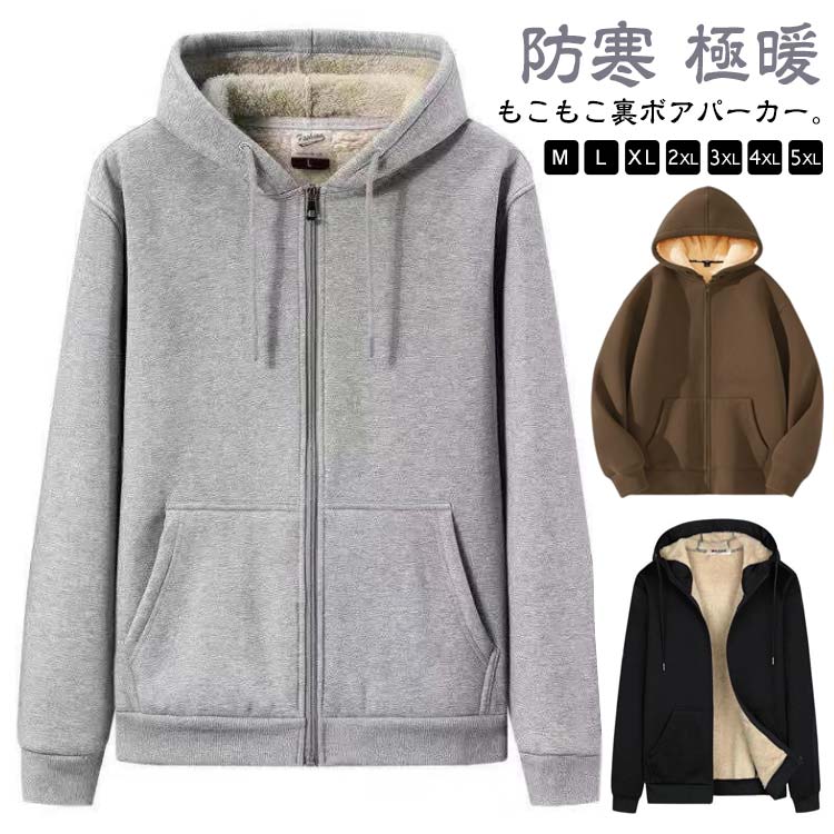 裏起毛 パーカー ブルゾン もこもこ 厚手 ジップパーカー あったか 防風 アウター 長袖 カジュアル トップス