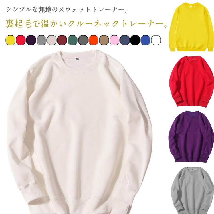 シンプルな無地のスウェットトレーナー メンズ 裏起毛 トレーナー 長袖 あったか スウェット トップス パーカー プルオーバー 大きいサイズ 春秋冬